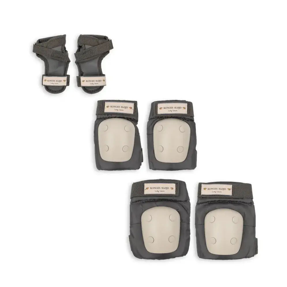 Zestaw zawiera ochraniacze na kolana, ochraniacze na łokcie oraz ochraniacze na nadgarstki.