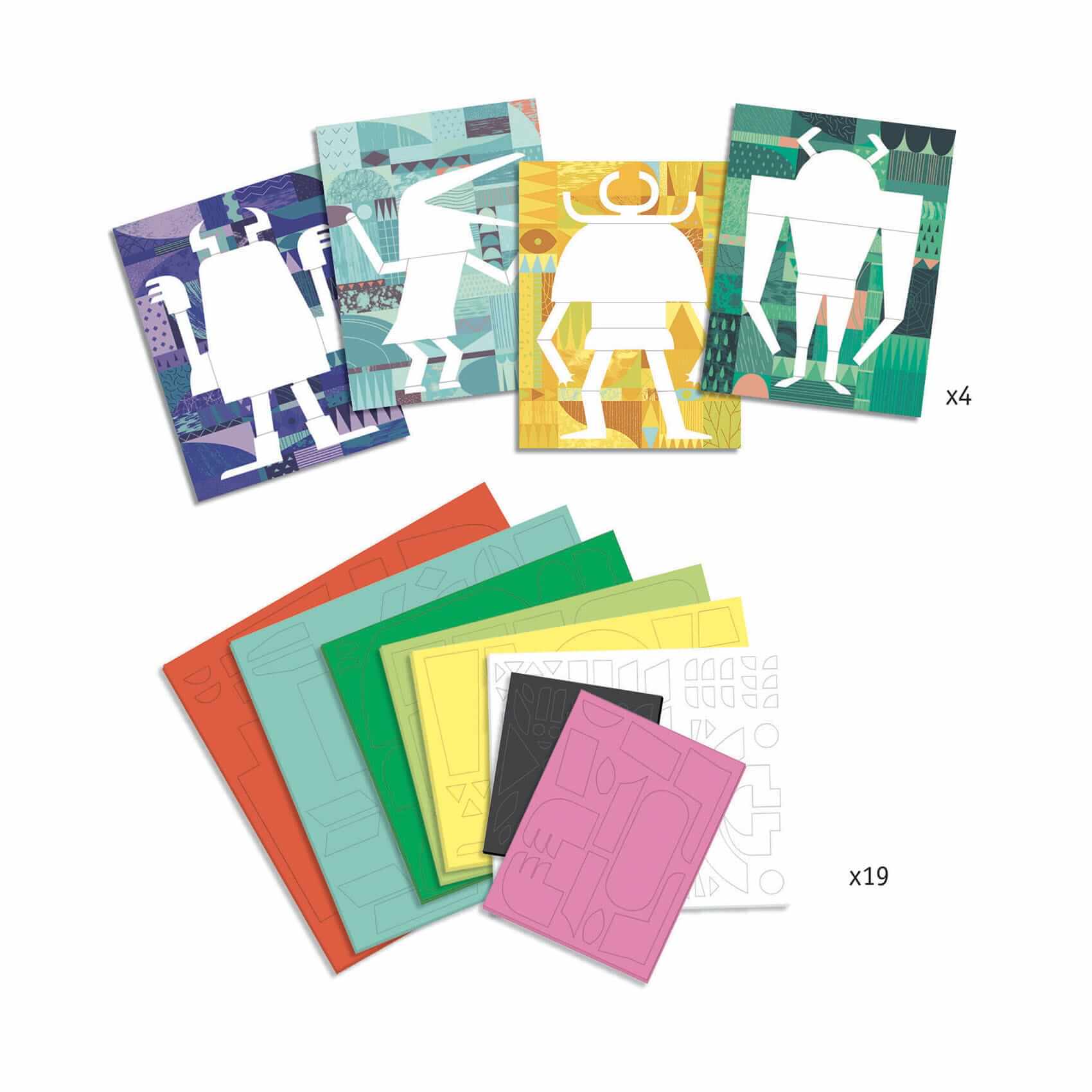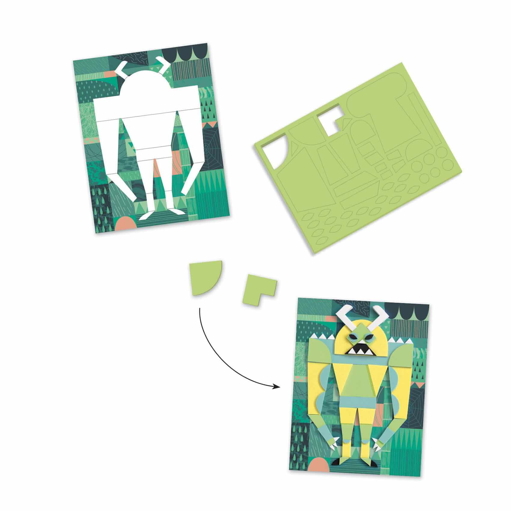 - 4 kartonowe obrazki z kształtami potworków do wyklejenia 15x20 cm