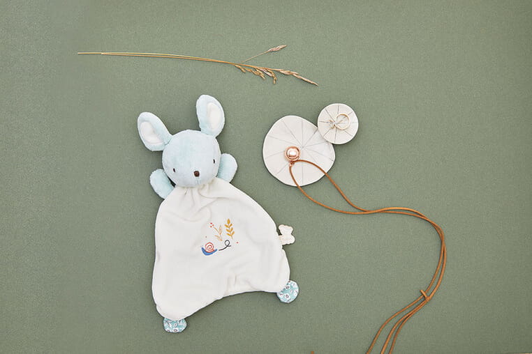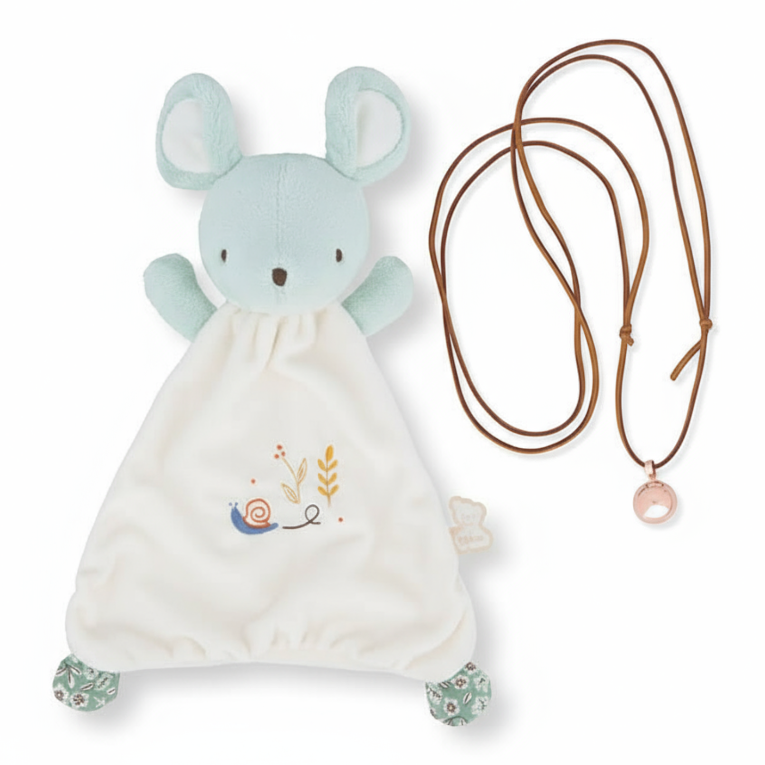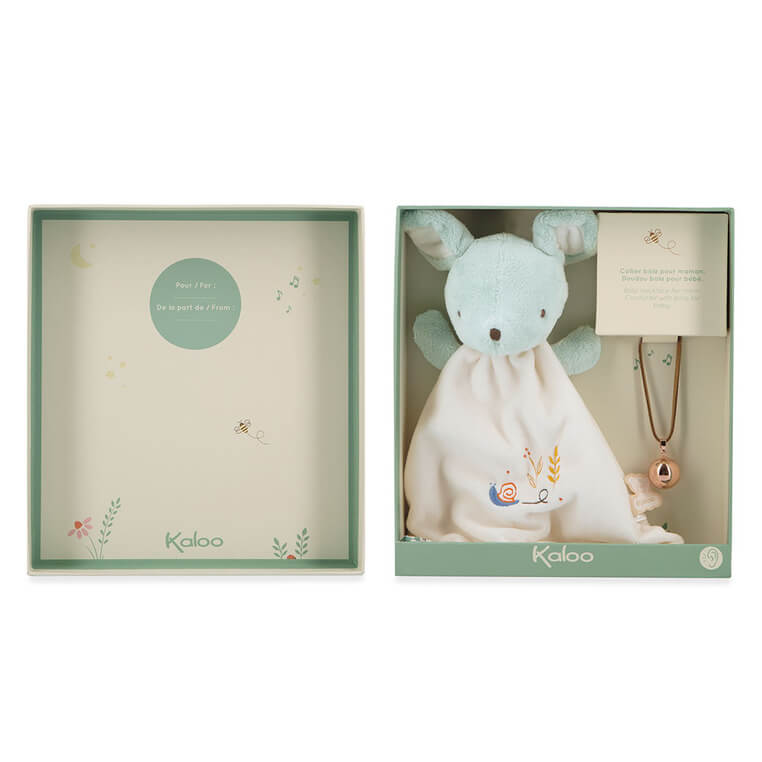 Zestaw prezentowy 2w1 Myszka (komforter + naszyjnik dzwoneczek ciążowy Bola) Petites Chansons