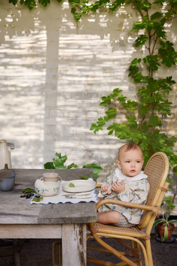 Ten piękny zestaw dla raczkujących smakoszy został wykonany w całości z silikonu spożywczego bez BPA. Przetrwa lata, nawet jeśli każdego dnia będzie upuszczany lub rzucany na podłogę. Zaokrąglone trzonki noża i widelca pewnie leżą w małych rączkach, a podwyższona krawędź talerza zachęca malucha do samodzielnego jedzenia. Pomysłowa przyssawka umożliwia przyklejenie talerzyka do każdej płaskiej powierzchni, bez obaw, że talerzyk się przesunie czy malec zrzuci go na podłogę.