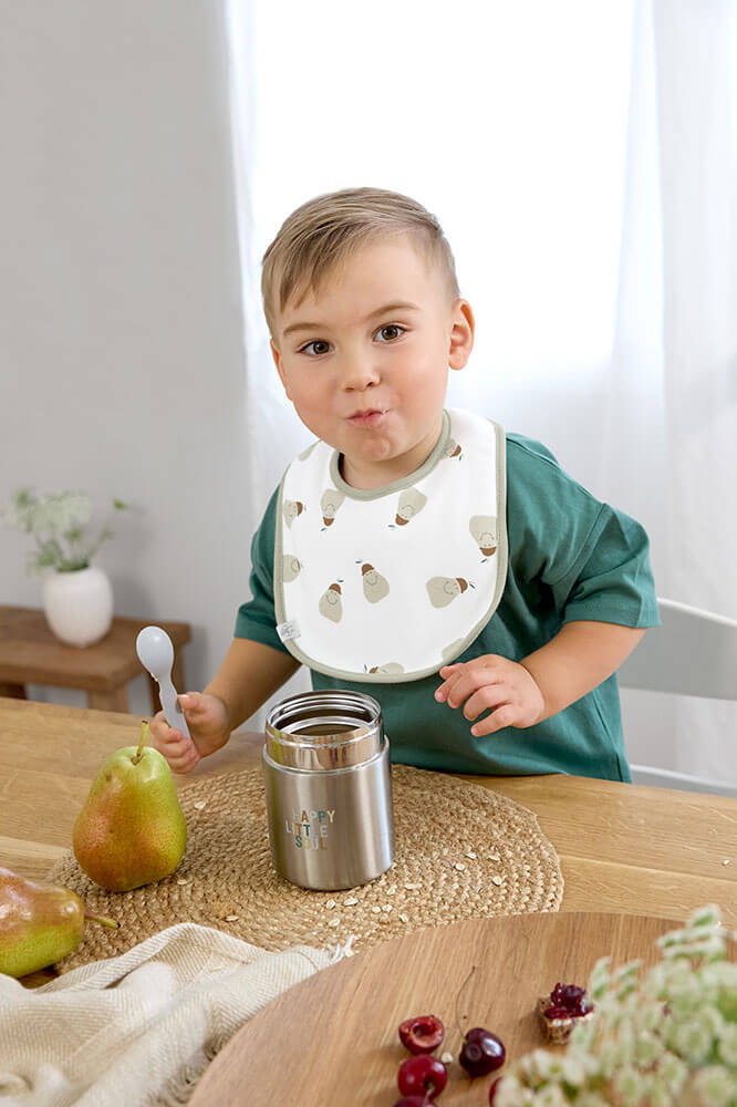 Kolekcja Happy Fruits to seria akcesoriów do posiłków dla dzieci, takich jak śliniaki, sztućce, naczynia czy termosy, ozdobionych uroczymi, owocowymi motywami. Produkty łączą funkcjonalność z radosnym designem, sprawiając, że posiłki stają się przyjemniejsze i bardziej atrakcyjne. Dodatkowo, zachęcają maluchy do odkrywania radości płynącej z samodzielnego jedzenia.