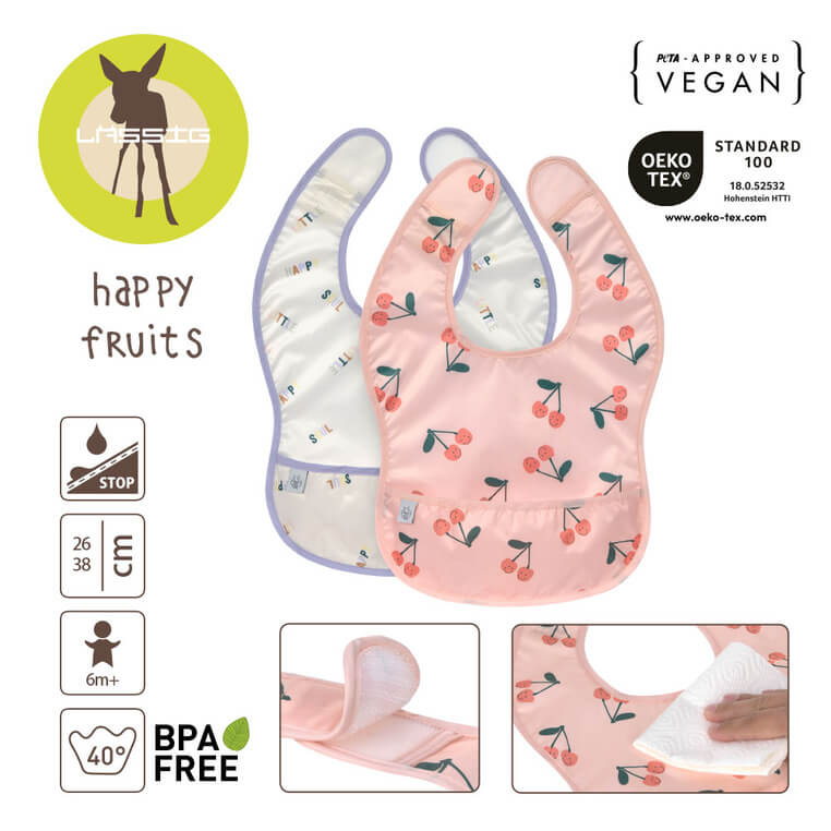 Zestaw śliniaków wodoodpornych 2szt. 6m+ Happy Fruits Cherry
