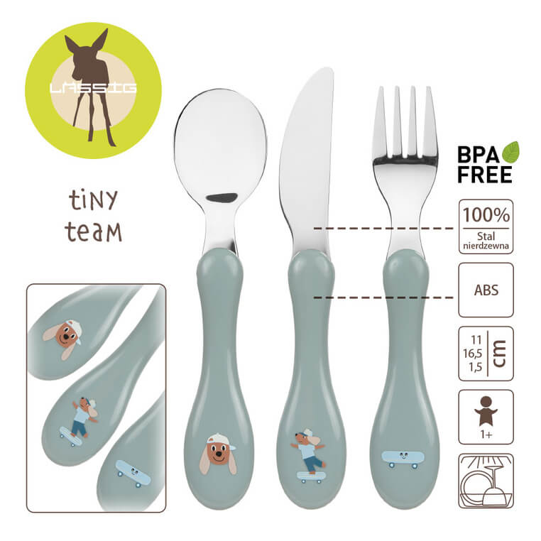 Zestaw sztućców ze stali nierdzewnej z kolekcji Tiny Team niemieckiej marki LASSIG