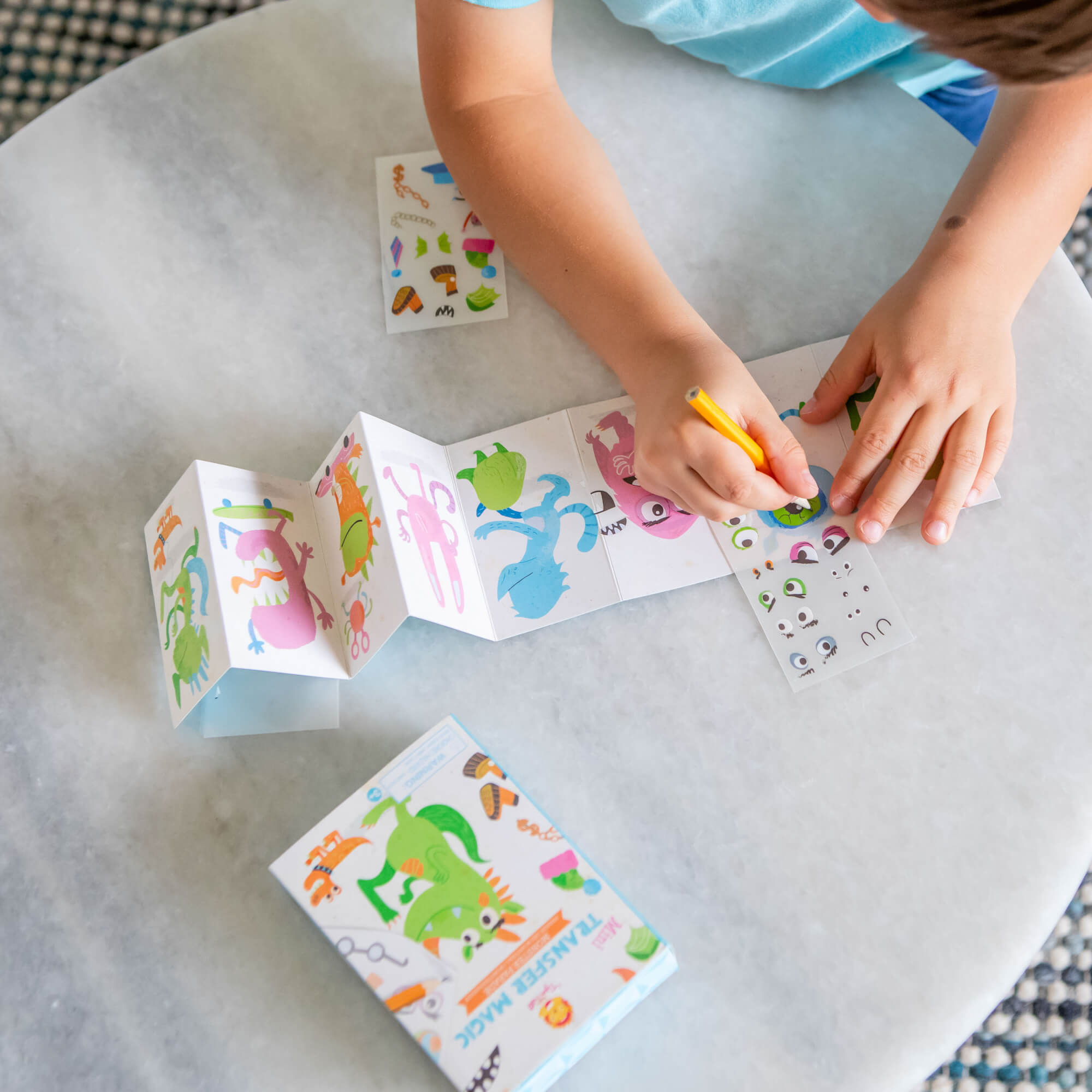 W nowym, super kompaktowym formacie, w którym dzieci wykorzystują swoją wyobraźnię, aby tworzyć własne kreatywne kombinacje. Wystarczy wybrać arkusz kalkomanii, usunąć papier podkładowy, umieścić wybrany element kalkomanii na szablonie potworka i pocierać ją dołączonym ołówkiem. Zaprojektowane do bezproblemowej, przenośnej zabawy, wszystko jest starannie zapakowane w poręczne pudełko.