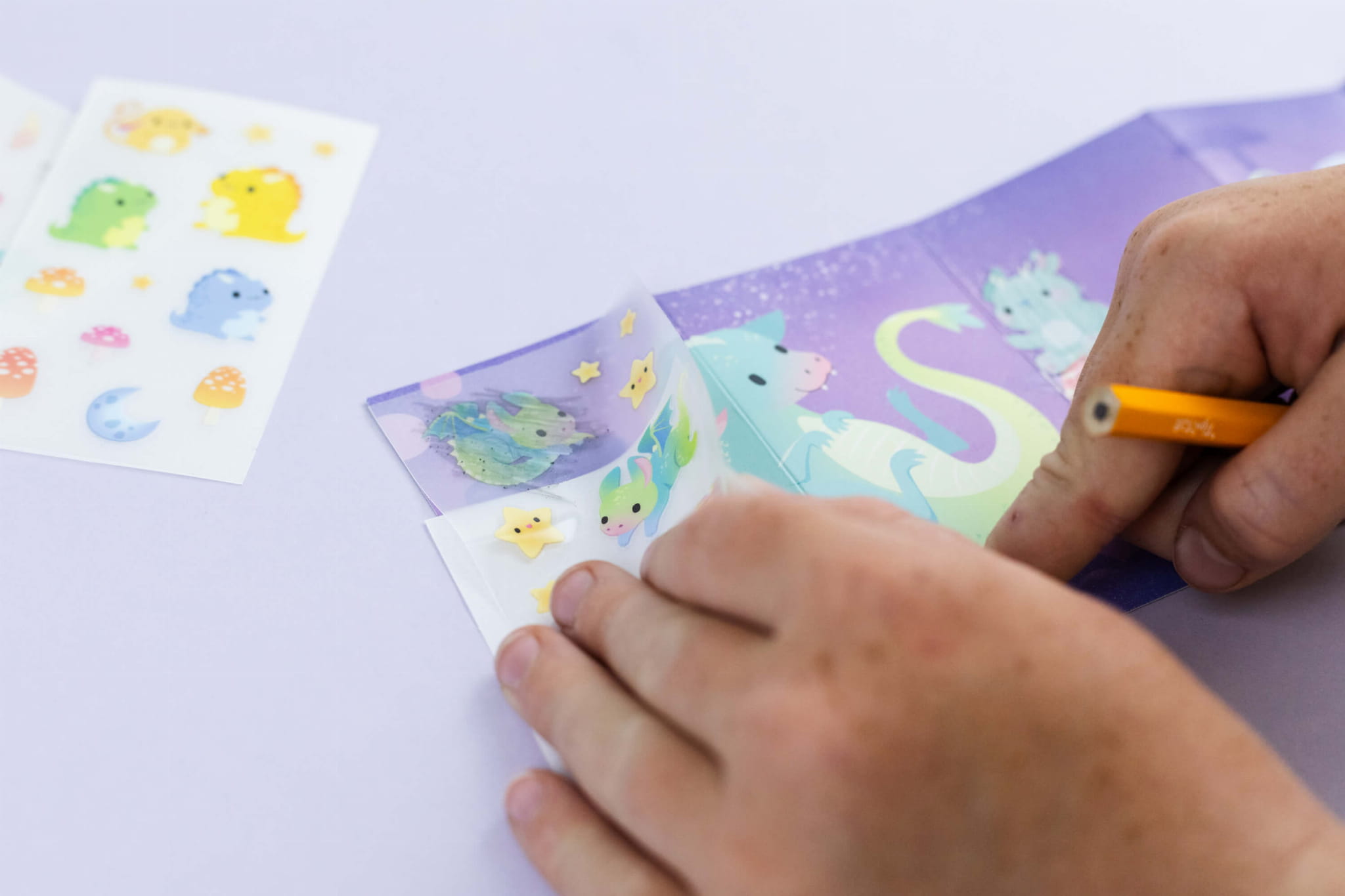 Uroczy zestaw do zabawy w nowym, super kompaktowym formacie, w którym dzieci wykorzystują swoją wyobraźnię, aby tworzyć własne kreatywne kombinacje. Wystarczy wybrać arkusz kalkomanii, usunąć papier podkładowy, umieścić wybrany element kalkomanii na szablonie stworka i pocierać ją dołączonym ołówkiem. Zaprojektowane do bezproblemowej, przenośnej zabawy, wszystko jest starannie zapakowane w poręczne pudełko.