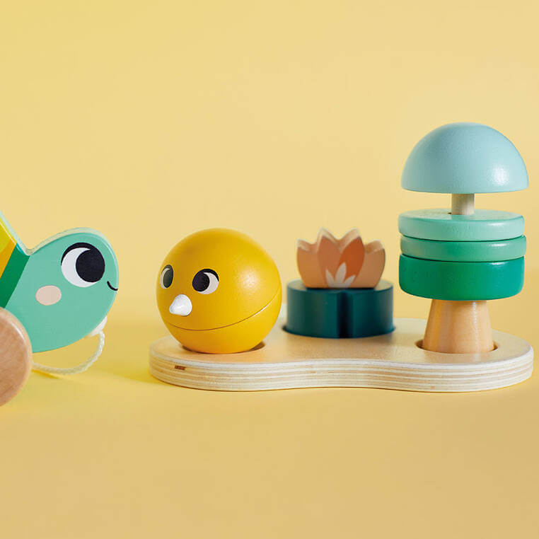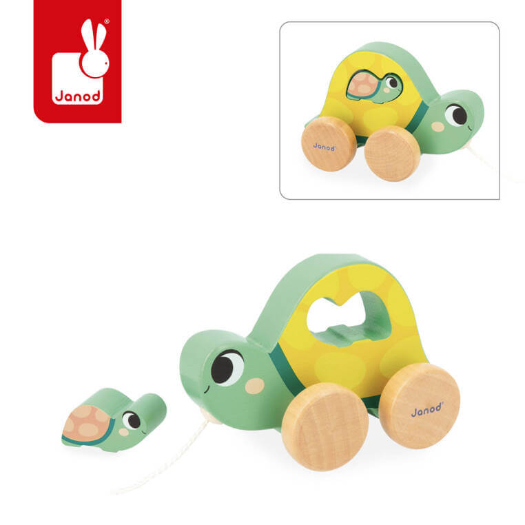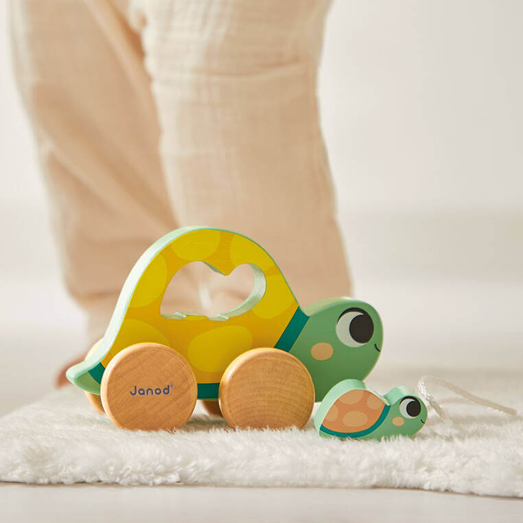 - mama-żółw z małym żółwikiem-puzzlem do ciągnięcia – zachęca do stawiania pierwszych kroków;