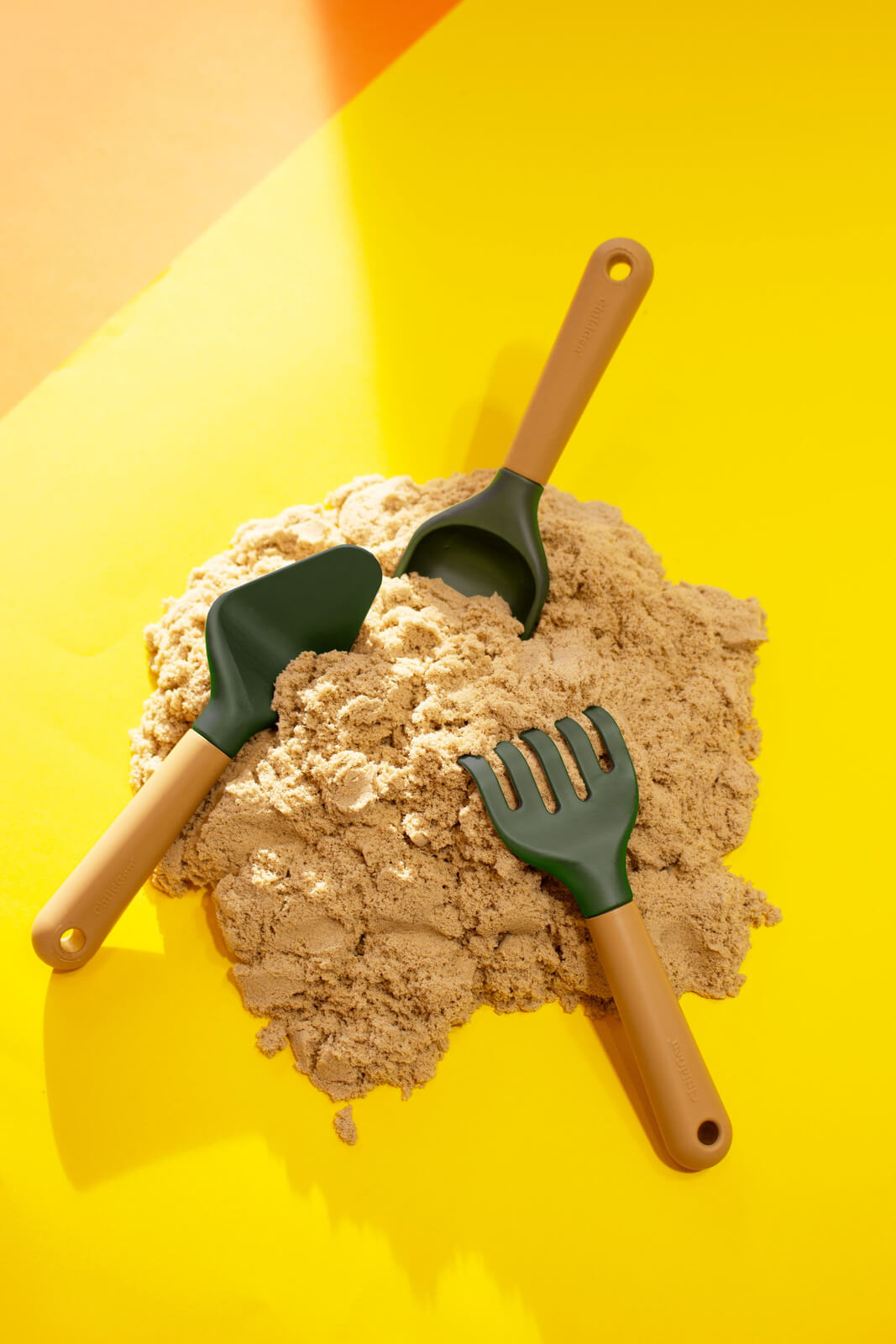 Zestaw idealnie nadaje się do zabawy w małych ogrodników. W komplecie znajdują się grabki, szpadel oraz łopatka do kopania.