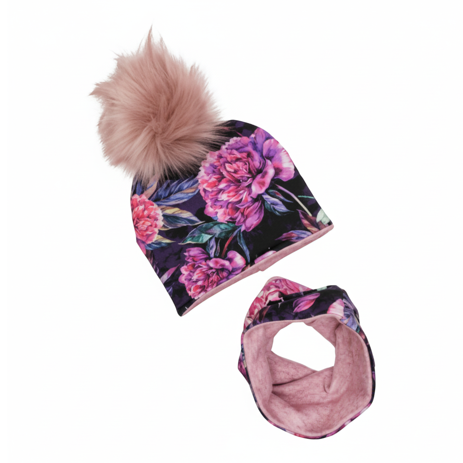 Zimowy komplet ocieplany PIWONIA z pomponem