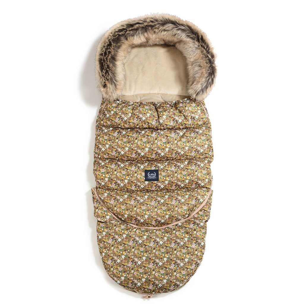 Zimowy śpiworek do wózka ortalion COMBO - FLOWER STYLES, SAND