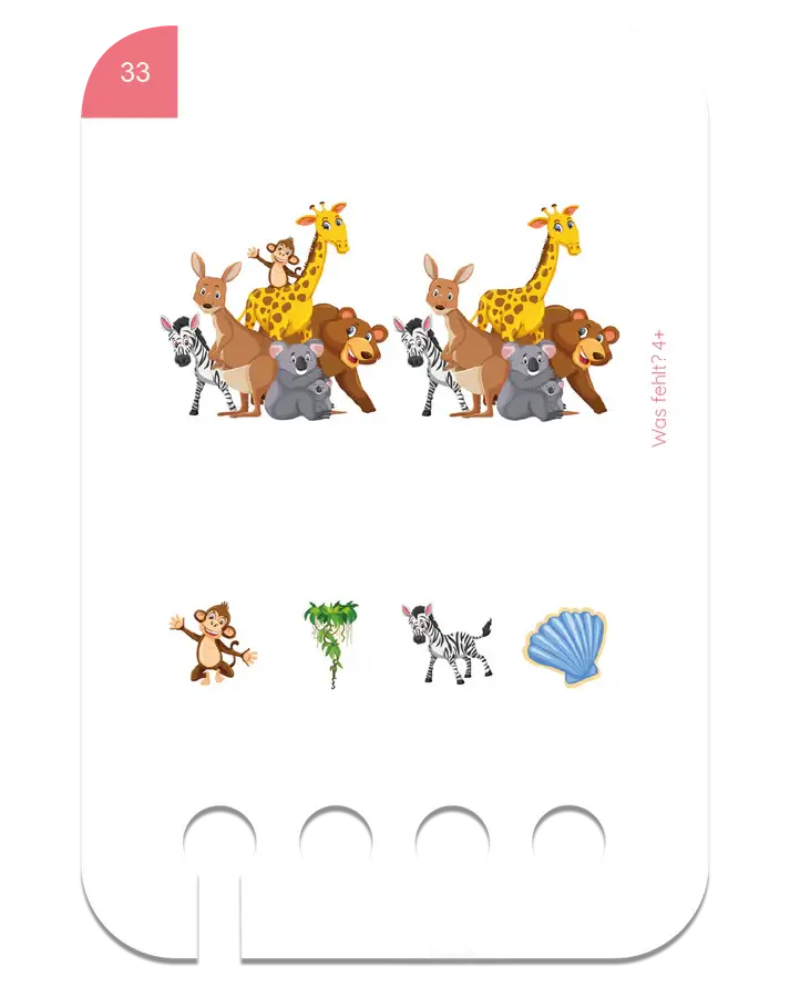 Zestaw Znajdź Różnicę zawiera 48 starannie dopasowanych zadań na 24 kartach. Zestaw ten rozwija spostrzegawczość, koncentrację oraz umiejętność logicznego myślenia poprzez identyfikację brakujących elementów na obrazkach.
