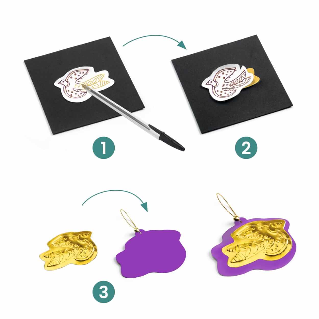 Przejedź tam i z powrotem po ilustracjach wydrukowanych na odwrocie metalicznych naklejek,va one, jak za dotknięciem czarodziejskiej różdżki, uniosą się po drugiej stronie dając efekt wypukłości.
