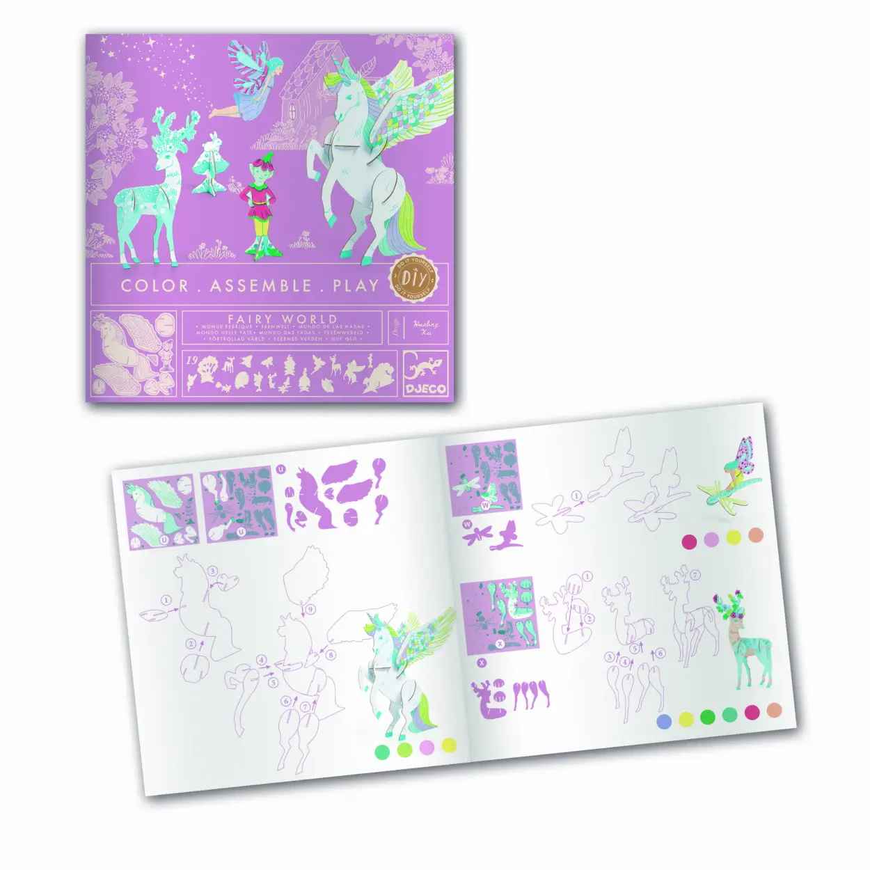 Zestaw kreatywny składający się z kartonowych elementów do pokolorowania i złożenia