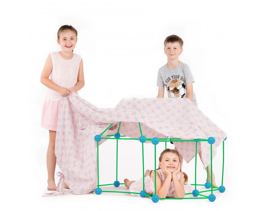 Zabawka edukacyjna, która rozwija umiejętności wizualno-przestrzenne, inżynierskie, projektowania, planowania oraz kreatywność. Zwariowany Namiot to zabawka konstrukcyjna z której można w łatwy i szybki sposób budować duże, wytrzymałe, łatwe do przenoszenia, świetne w zabawie kompozycje jak igloo, domek, zamek, wieża, tunel, które można przykryć kocem lub innym materiałem. Konstrukcje są tak duże, że dzieci mogą się w nich bawić.