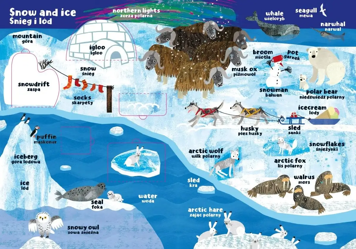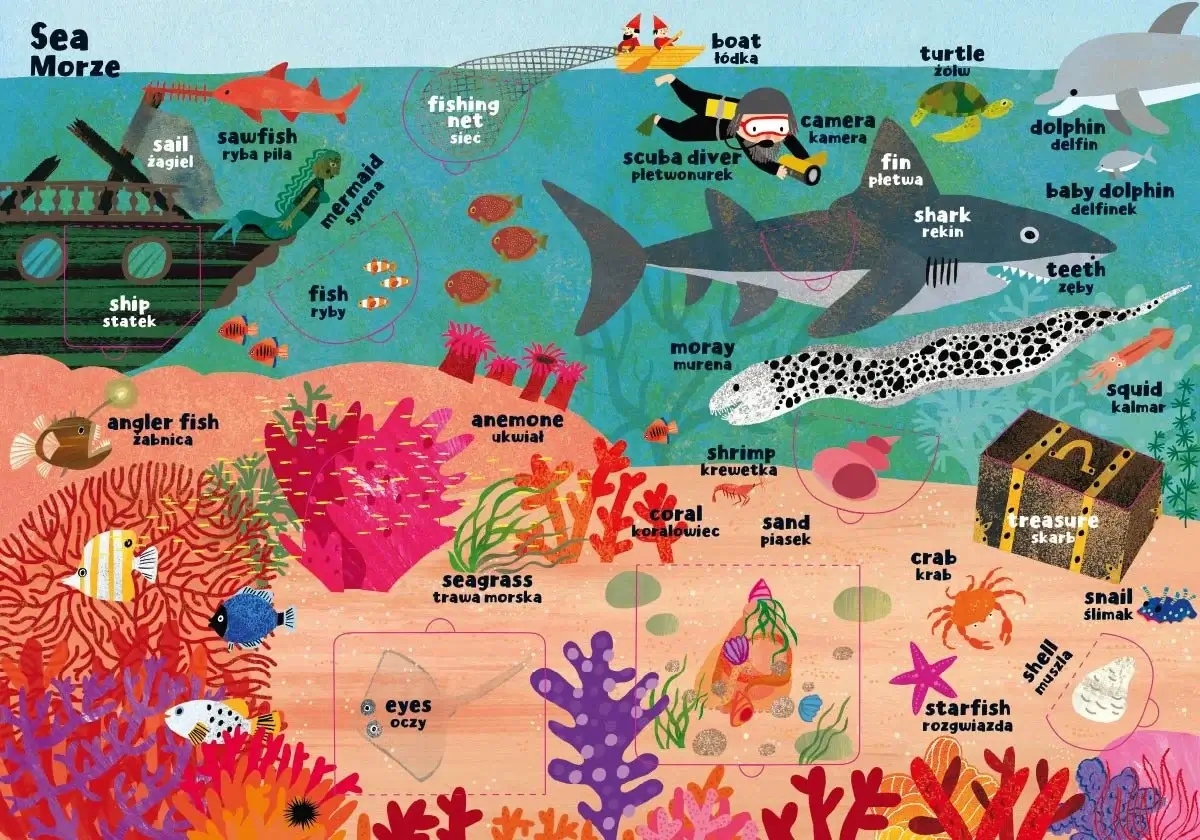 "Moja pierwsza encyklopedia polsko-angielska z okienkami" to seria edukacyjna, dzięki której najmłodsi poznają świat i uczą się angielskich słówek