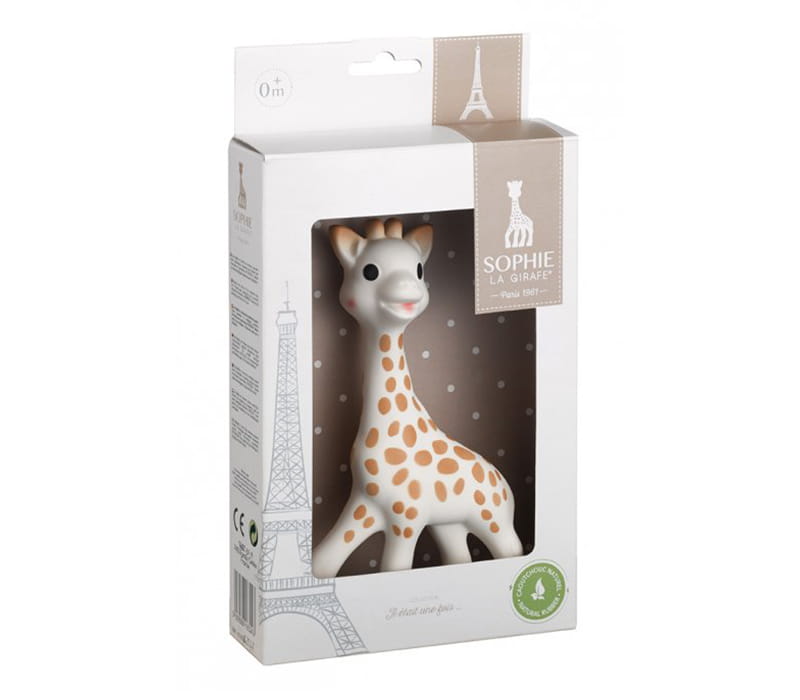 Urodzona w 1961 roku w Paryżu, Żyrafa Sophie jest symbolem pierwszego gryzaka malucha, który nie tylko koi ząbkujące dziąsła, ale także bawi i rozwija pięć zmysłów dziecka: wzrok, słuch, dotyk, zapach i smak.